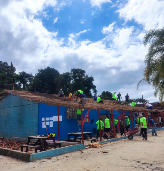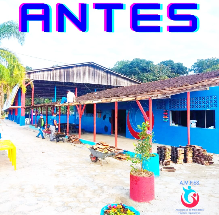 No dia 13 de setembro houve um mutirão e movimentou a sede da AMFES desde cedo. Entre serras e martelos, mais de 30 pessoas se dividiram nas tarefas: alguns retiravam a cobertura antiga, outros encaixavam a nova estrutura, enquanto grupos menores cuidavam da limpeza e da organização do espaço.